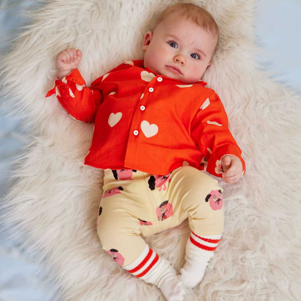 Le motif en forme de chien, typique de Mini Rodini, ajoute du caractère à l'ensemble et rend le pantalon idéal pour la vie de tous les jours, pour le jardin d'enfants ou pour les sorties.