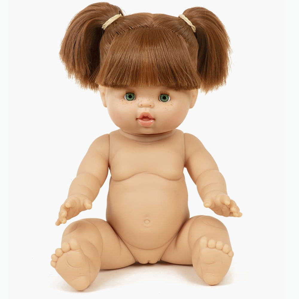 Avec ses yeux verts, ses taches de rousseur sur le visage et ses nattes rouges tressées, cette poupée ressemble à une véritable compagne d'histoires pour enfants.