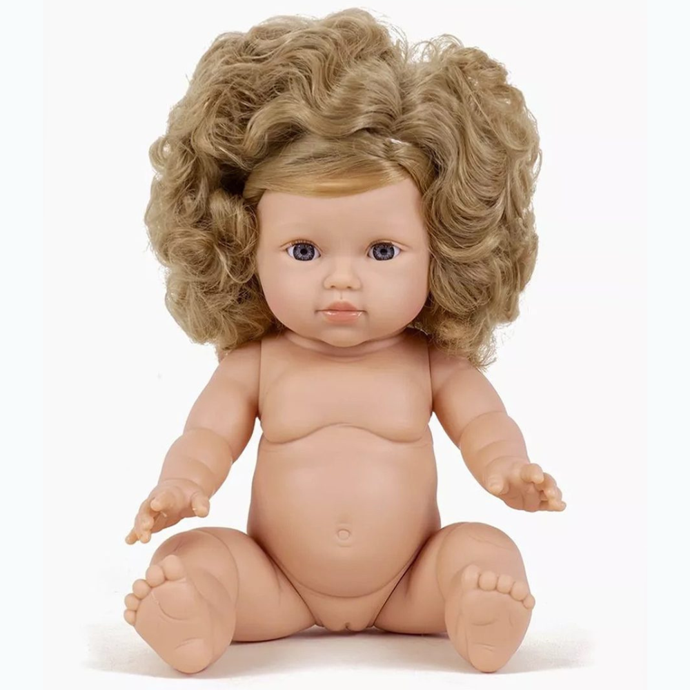 Lola est une poupée Minikane classique de la collection Gordis - avec un teint clair, des cheveux blonds ondulés et des yeux gris-bleu.