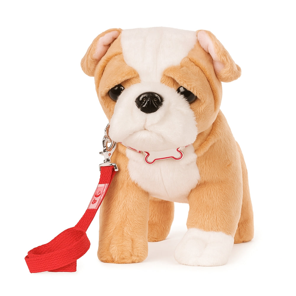 Le chiot câlin Bulldog de Our Generation est un adorable chiot en peluche avec collier et laisse, prêt pour les promenades et les soins quotidiens.
