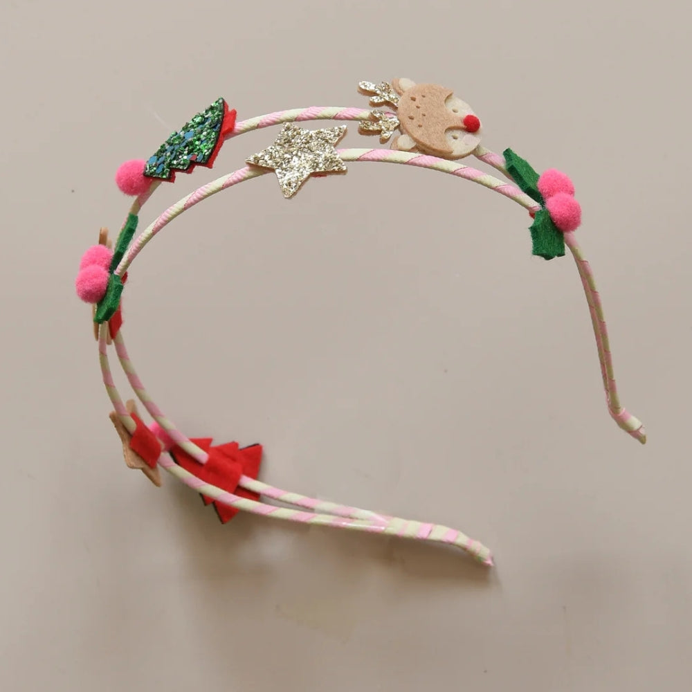 Le double bandeau est décoré d'éléments adorables tels qu'un renne, un sapin de Noël, des étoiles scintillantes et du houx, ce qui le rend parfait pour les réunions de famille, les séances de photos de Noël ou les jeux de fête.