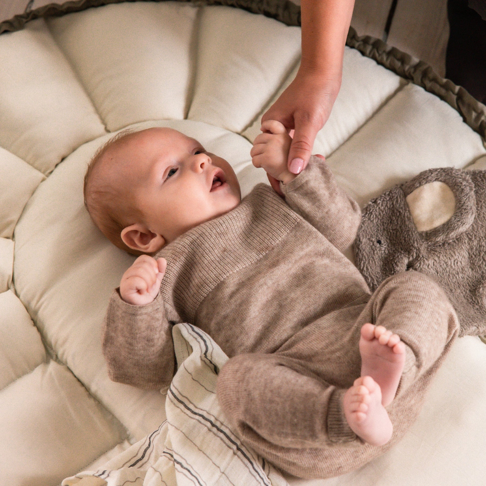 Le cocon pour bébé Sebra en Olive foncé avec un imprimé de feuilles polyvalent s'inscrit parfaitement dans le style scandinave moderne et sera un cadeau à la fois beau et pratique pour les nouveaux parents.