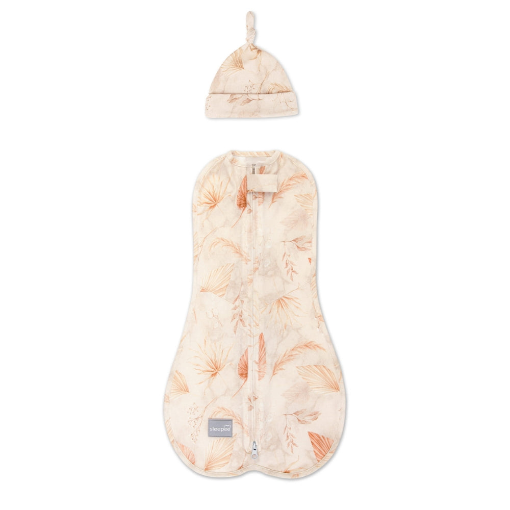Echarpe de portage pour bébé sleepee first step avec bonnet de sable bohème.