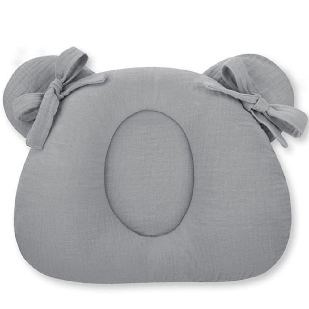Le coussin pour bébé est fabriqué en mousseline de coton douce et a la forme d'une tête d'ourson.