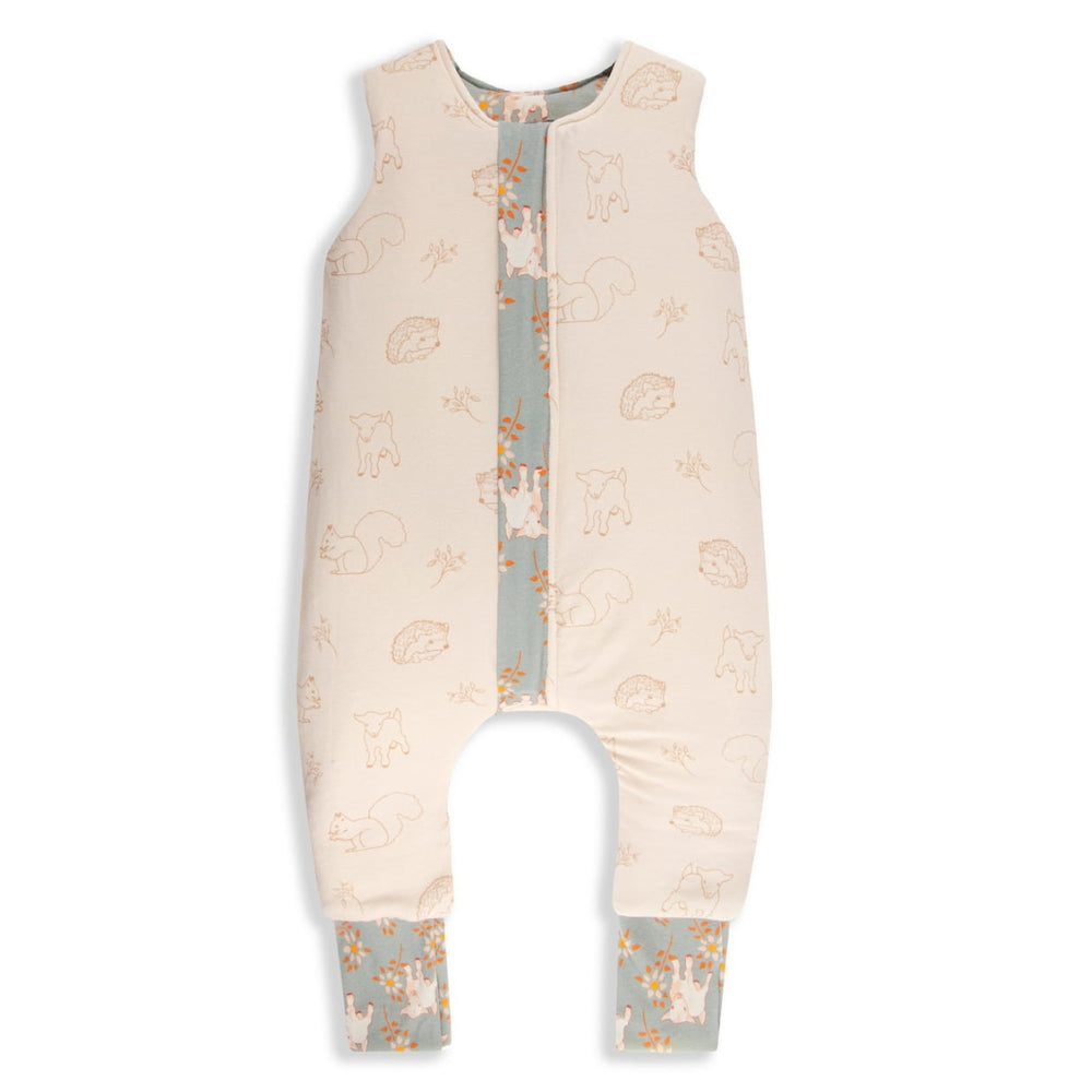 Sac de couchage innovant double face avec jambes Vintage Animals Sky Blue/Cream de Sleepee.