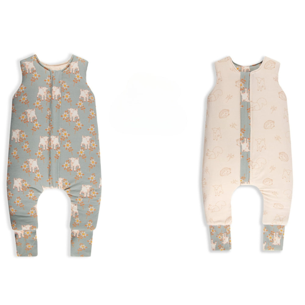 Sleepee Sac de couchage double face avec jambes Vintage Animals Sky Blue/Cream 1-2 ans