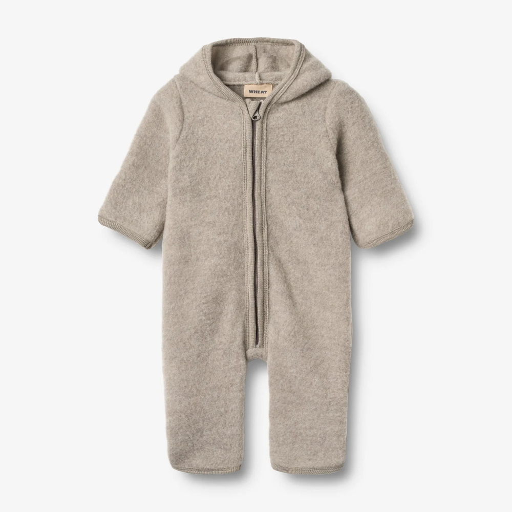 La combinaison pour enfants Wheat en laine mérinos feutrée est un choix doux et chaud pour les bébés lors des journées froides.
