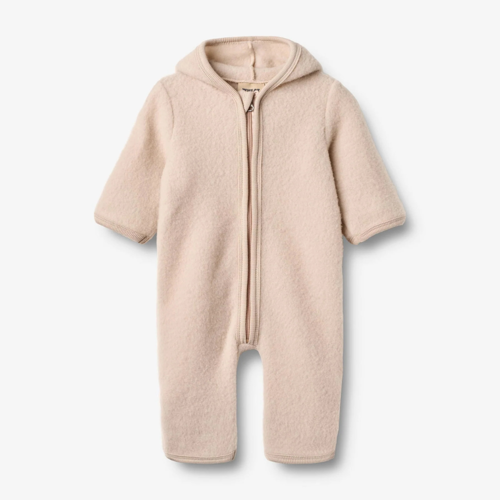 La combinaison pour enfants Wheat en laine mérinos feutrée est un choix doux et chaud pour les bébés lors des journées froides.
