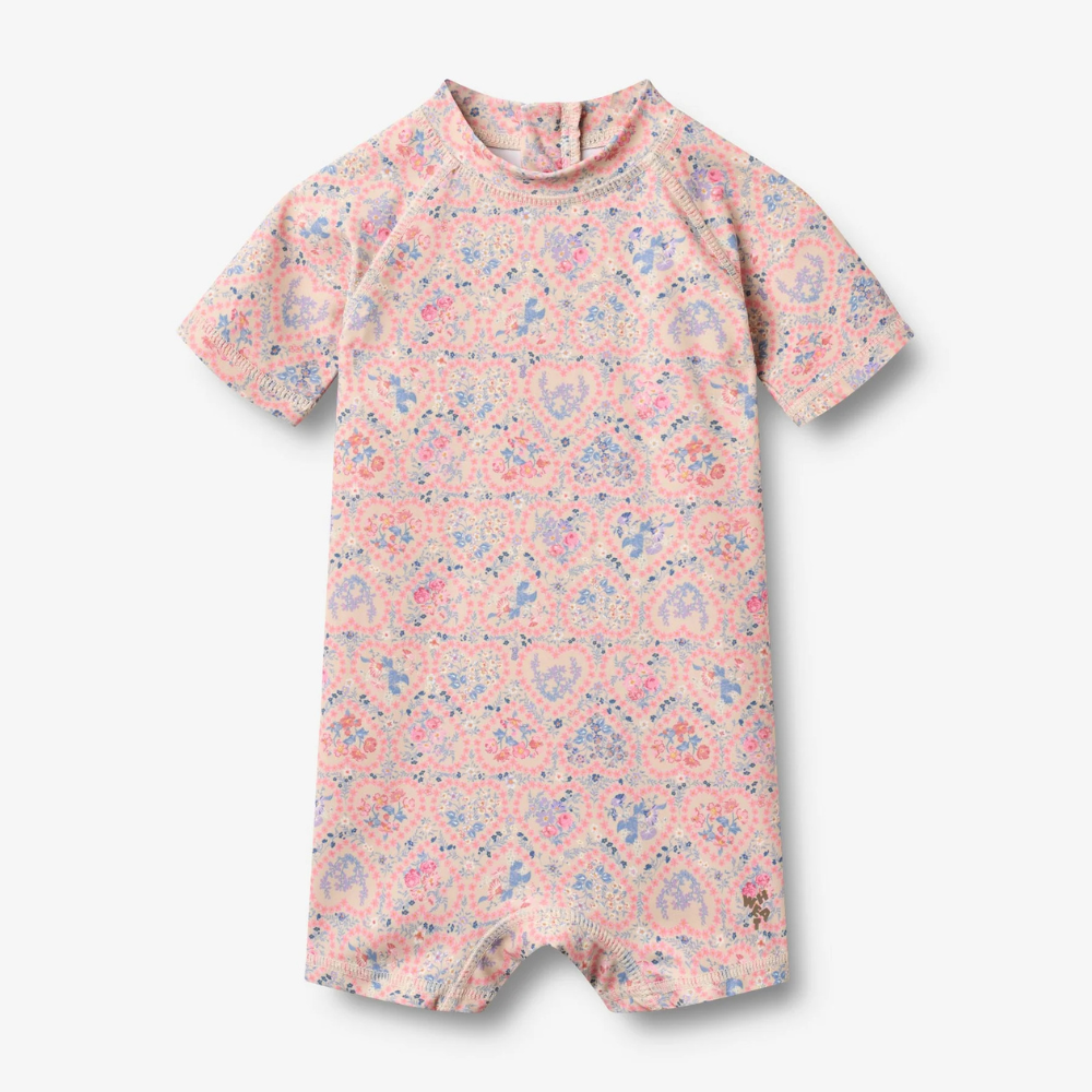 Wheat Maillot de bain enfant manches courtes Cas rose fleur de cœur